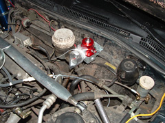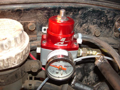 Disconnect the vacuum and fuel return line. Remove the stock FPR.