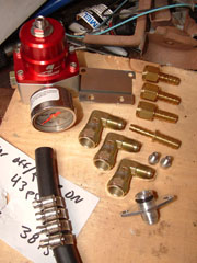 There are hose kits out there for fuel return lines to aftermarket fprs, but I went to a local plumbing store and put together my own kit with brass -6an flare fittings, 3/8" ID hose and rubber o-rings on the flare fittings that connect to the fpr. Just by knowing those three parts you already know how to put it together. This tutorial will outline how to run plumbing from the fuel rail to the regulator and then to the return line.