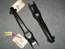Lower front arms - 2 lower front arms are required, and they are symmetrical like the endlinks. The stock Galant front arms don't have the holes for the endlinks to bolt onto as pictured here. Also, the eclipse arms seem to be reinforced underneath, click here for a comparison. Part #5 in the diagram below.